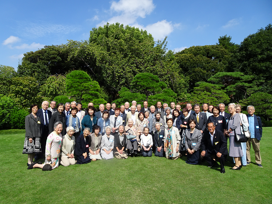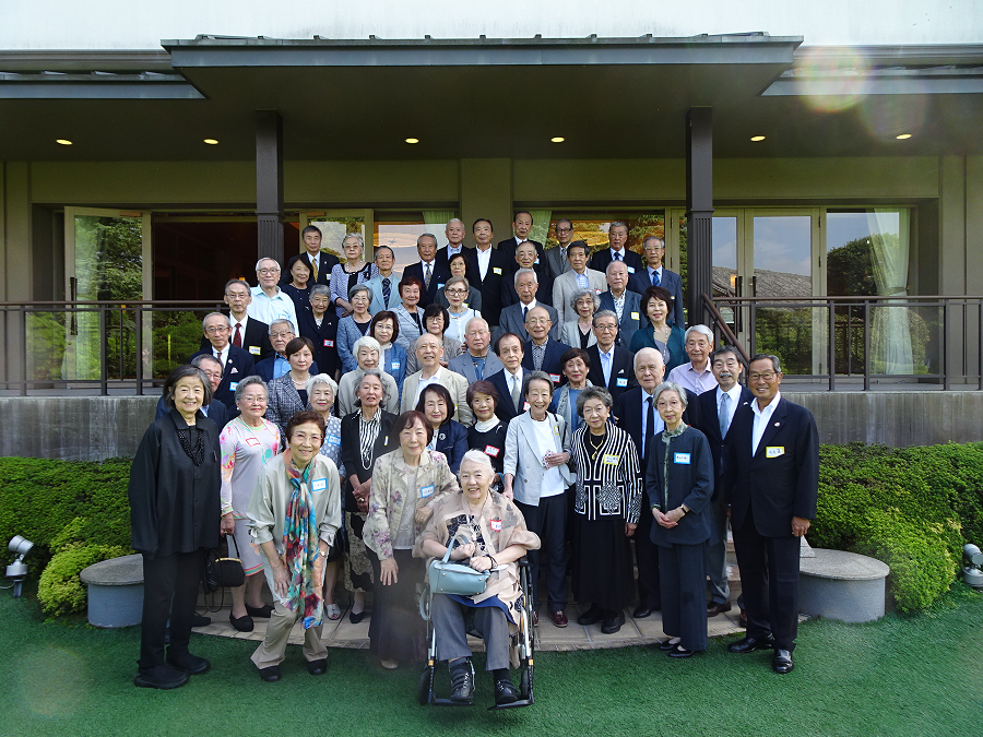 集合写真撮影の後にぎやかに歓談、全員が30秒スピーチを行い安倍能成院長の「正直第一」の薫陶を踏まえた初等科の思い出や近況報告をし、再会を願いつつお開きになりました。